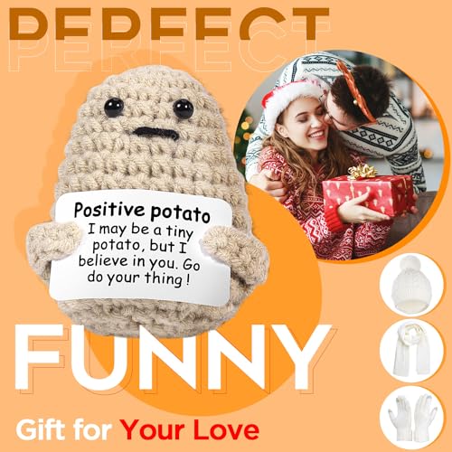 AICase Birthday Gifts for Womens Christmas Gifts Beanie Hat Scarf Gloves Set with Cute Positive Potato