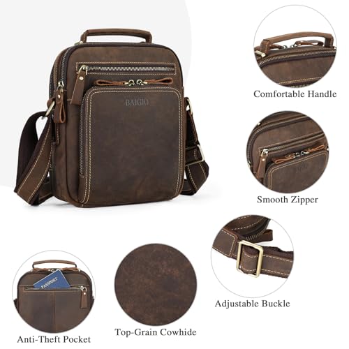 BAIGIO Small Leather Messenger Bag for Men Shoulder Bag Crossbody Vintage Handbag Man Purse for Ipad Travel Bussiness 5