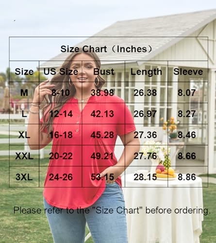 Bestbee Women's Summer Tops Short Sleeve Tunics Dressy Casual Blouses Henley Neck Button-Down Shirts 6