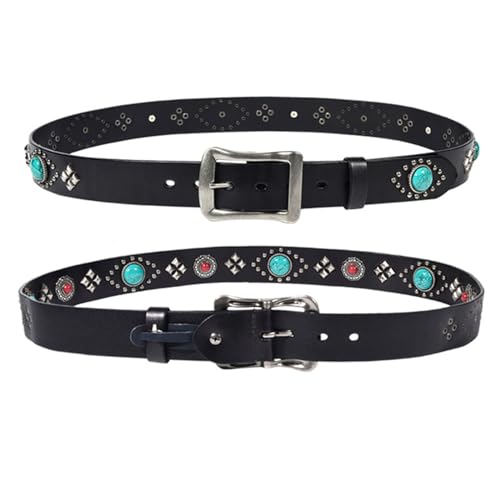 HOT ! Studded Punk Women's Belt, Metal Pin Buckle Rock Personalized Turquoise Embellished Cowhide Belt