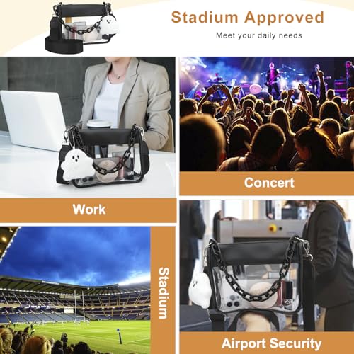 Clear Bag Stadium Approved, Small Zipper Clutch Purse Crossbody Shoulder Bag for Concerts Sports Events, with Removable Adjustable Strap for Women, Black 5
