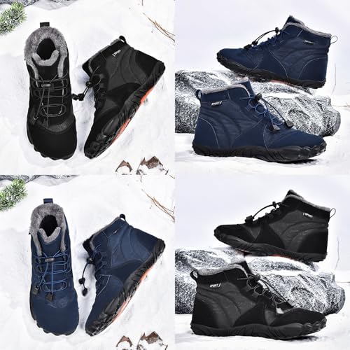 Men’s Wide Toe Box Barefoot Snow Boots Warm Fur Lined Winter Waterproof Anti-Slip Zero Drop Sole Casual Walking Sneakers Outdoor Hiking Climbing Shoes 5