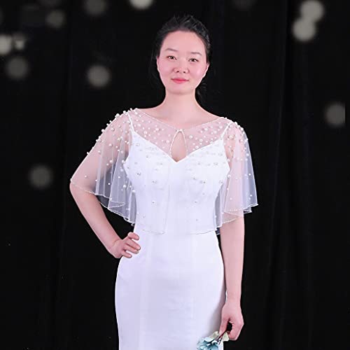 More information about Wedding Wraps Capes Soft Tulle Shawls with Pearl Beads Embroidery Bridesmaid Capelet Shrug for Party Evening Dress
