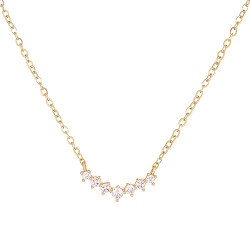 CZ Curved Bar Pendant Necklace for Women 925 Sterling Silver Cubic Zirconia Pendant for Mother 14K Gold Plated V Shaped Charm Necklace for Mother Daughter Wedding Birthday Jewelry Gift 5