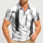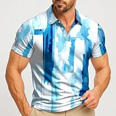 More information about Men's Geometic Polo Short Sleeve Polo Shirts Lapel Casual Athleisure Daily Wear 3D Print Buttons Summer Lake blue Blue Gray