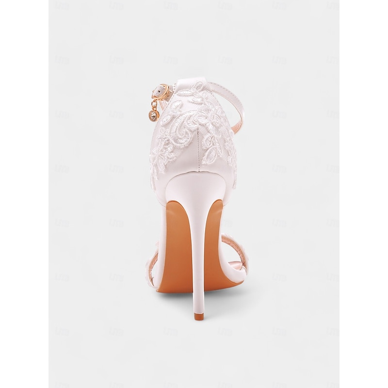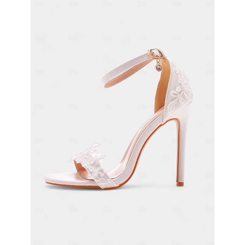 HOT ! Women's White Lace Stiletto Wedding Heels with Ankle Strap and Open Toe – Elegant Bridal Shoes for Weddings and Formal Occasions
