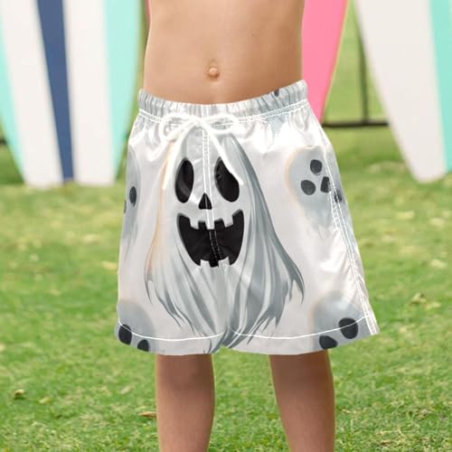 Pigsaly Boys' Swim Board Shorts White Cute Halloween Ghost Boy's Swim Trunks Kids Swimwear 4T 4
