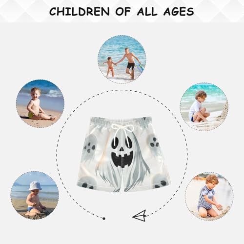 Pigsaly Boys' Swim Board Shorts White Cute Halloween Ghost Boy's Swim Trunks Kids Swimwear 4T 1