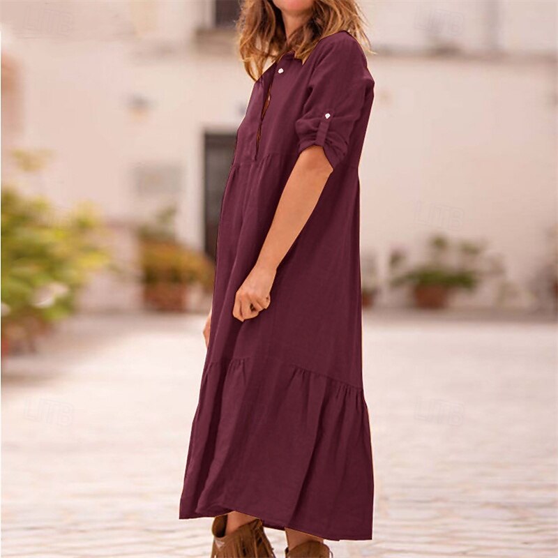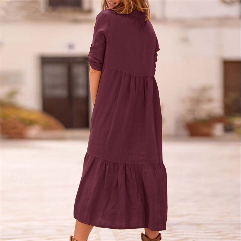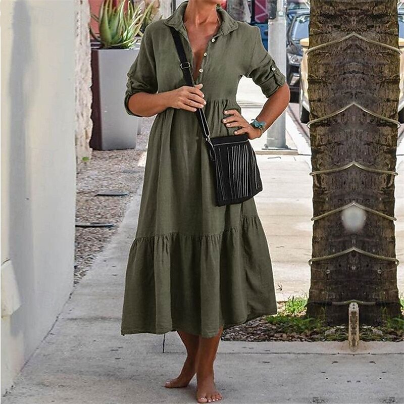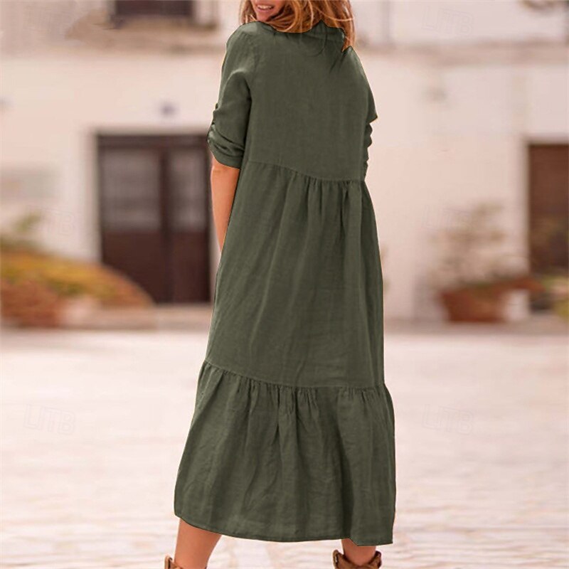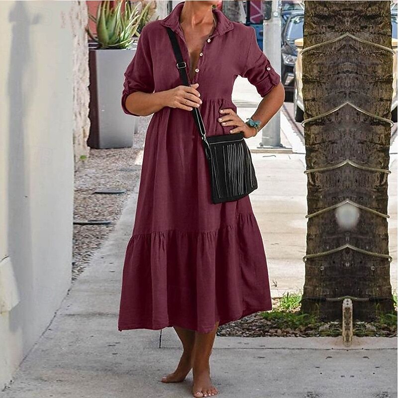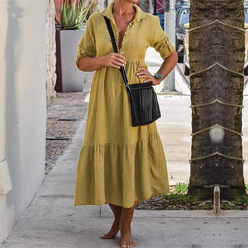 More information about Women's Midi Dress Casual Dress Cotton Linen Dress Summer Dress Fashion Modern Outdoor Date Weekend Regular Fit Plain Sleeveless Shirt Collar Yellow Wine Army Green Summer Spring