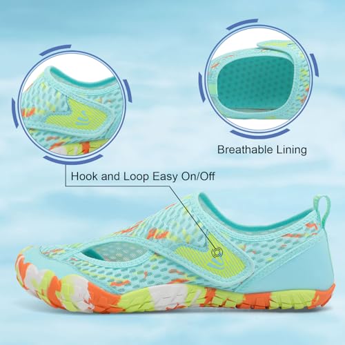 • Anti-Slip Rubber Sole for Prime Foot Protection:the swim water shoes with thickened and wearable rubber sole,protecting your feet from sharp objects hurting when you are walking in the beach or pool.3D bump texture treads provide excellent grip and great cushioning