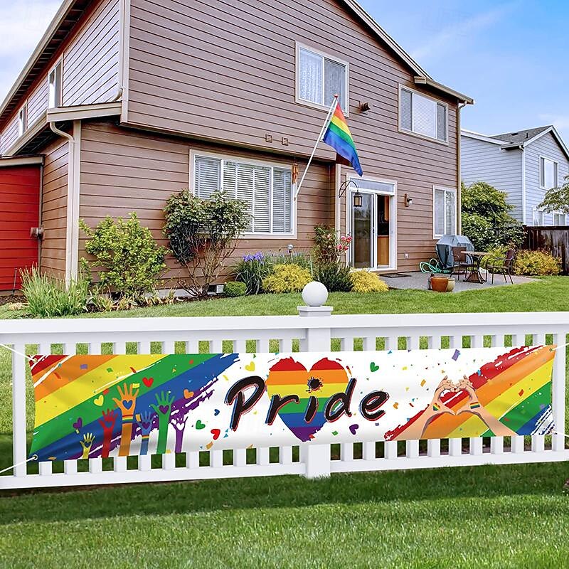 June Pride Month Happy Pride LGBTQ LGBT Outdoor Yard Sign Party Rainbow Home Decor for Garden Fence Garage Balcony Porch House Front Door Greeting Lawn
