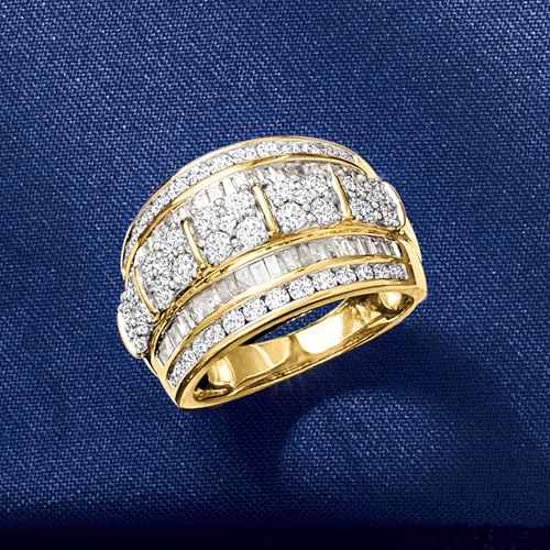 HOT ! Ross-Simons 2.00 ct. t.w. Round and Baguette Diamond Multi-Row Ring in 14kt Yellow Gold