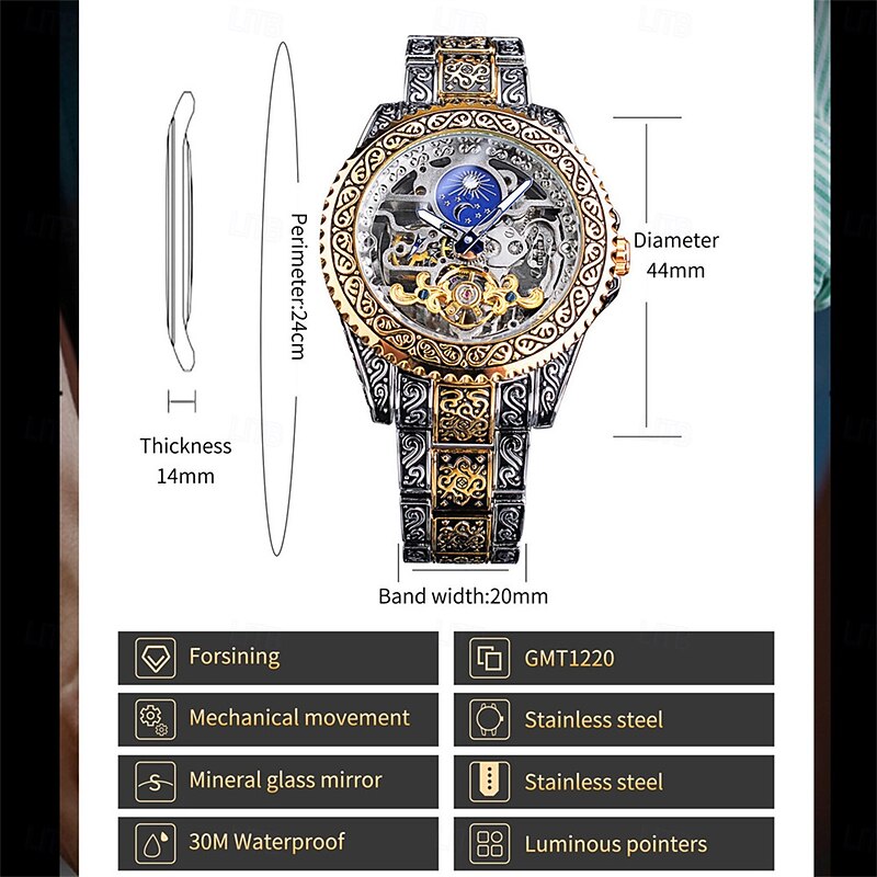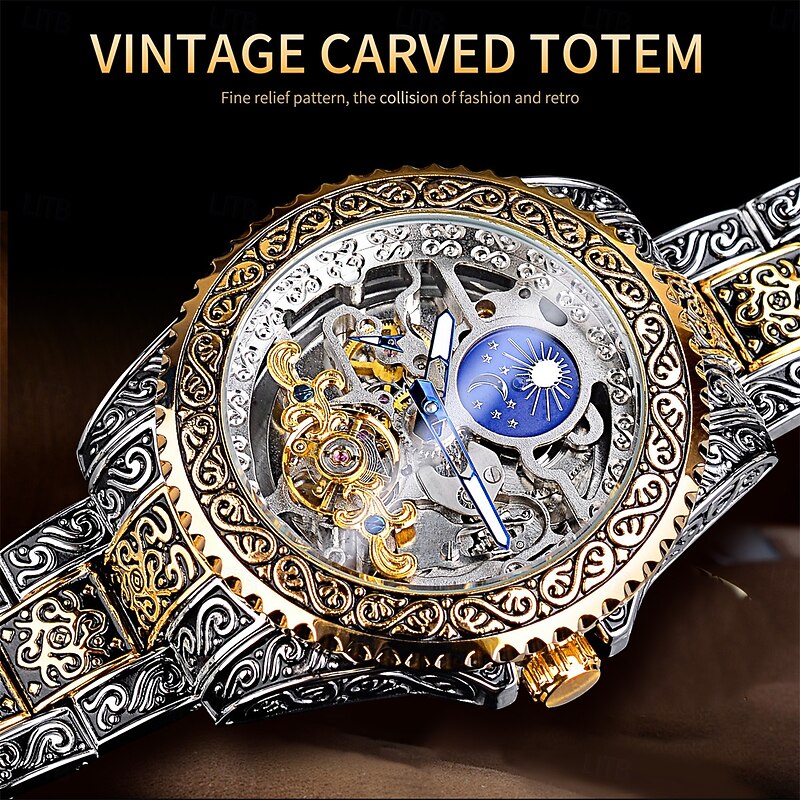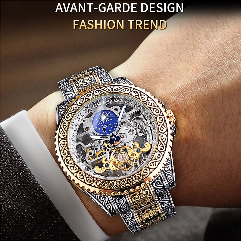 $45.99 - FORSINING Men Mechanical Watch Retro Vintage Luxury Large Dial Fashion Hollow Skeleton Automatic Self-winding Moon phase Luminous Stainless Steel Strap Watch 2025. Shop for cheap Mechanical Watches online? Buy at lightinthebox.com on sale today!