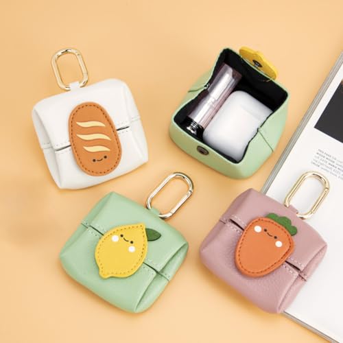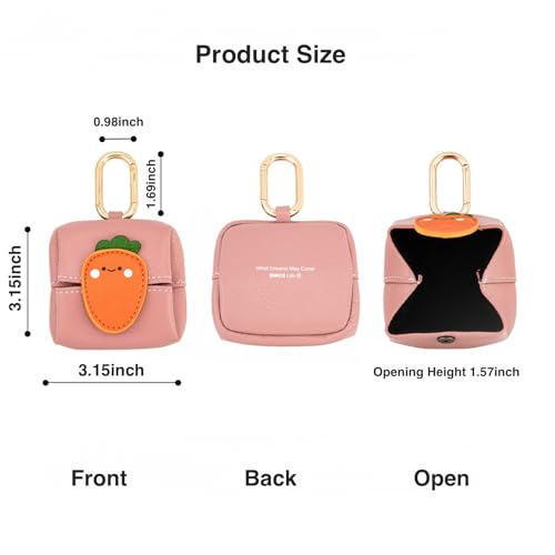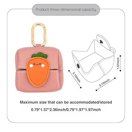 More information about Mini Coin Purse Keychain - Cute Cartoon Bluetooth Headset & Lipstick Organizer Pouch, PU Leather Small Cosmetic Bag for Earphones, Coins, Keys (Carrot)