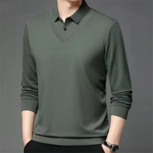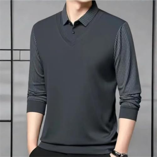 Men Long Sleeve Business Polo Shirts Turn-Down Collar Breathable Tops 2
