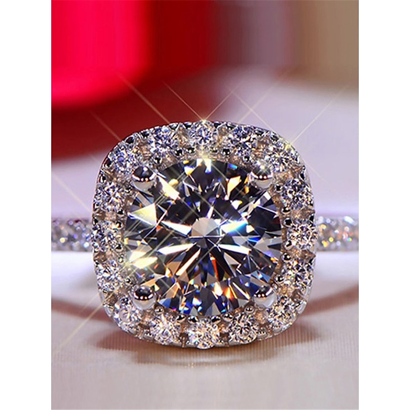 Highlights [Fabric] This exquisite women's ring is crafted with premium materials, primarily featuring polished white gold or platinum for a luxurious and resilient finish. The use of high-quality alloys ensures durability and a stunning, shiny appearance. [Fit] The ring features a classic and comfortable design with various size options available, ensuring a perfect fit for different finger sizes. Available in sizes ranging from Number 5 to Number 11, this ring can easily accommodate a variety of preferences and finger shapes. [Design Highlights] The centerpiece of the ring is a magnificent cushion-cut diamond, encircled by a halo of smaller round brilliant diamonds that amplify its sparkle. The band is adorned with additional small diamonds for extra glamour, blending modern luxury with timeless elegance. Its geometric pattern adds a contemporary touch to this classic piece, making it a standout accessory. [Occasions] Perfect for a variety of memorable events, this ring is ideal for engagements, weddings, romantic dates, or even elegant tea parties. Its versatile design makes it suitable for any season, be it spring, summer, fall, or winter, adding a touch of sophistication to any occasion. [Size Notice] Available in an array of sizes—Number 5, Number 6, Number 7, Number 8, Number 9, Number 10, and Number 11—ensuring you find the perfect fit for your needs.