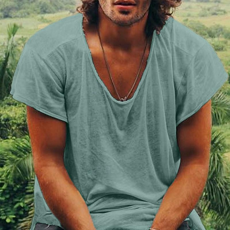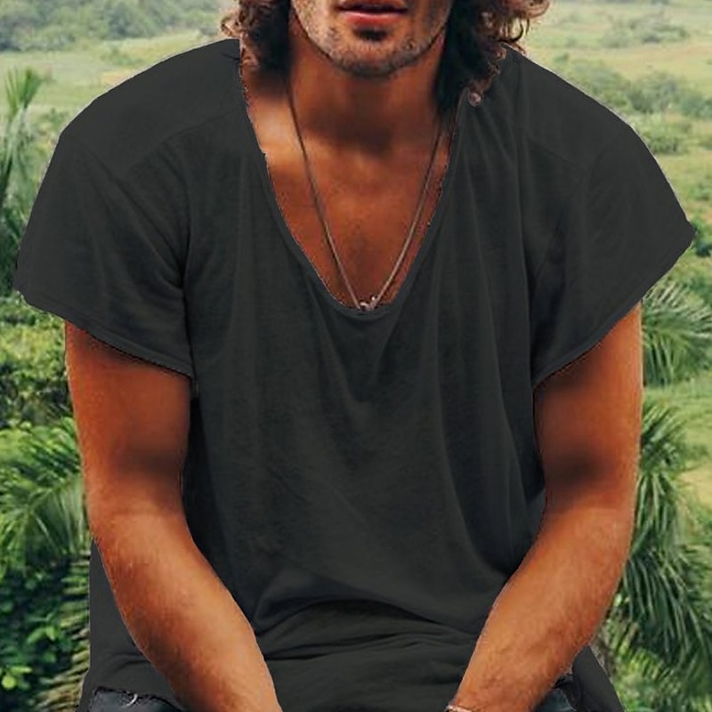 More information about 100% Cotton Men's Casual T Shirt Plain Crew Neck Summer Tee Street Holiday Short Sleeve Raw Edges Fashion Casual Comfortable Top Tee