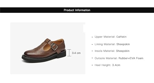 Women's Throwback-Inspired Calfskin Mary Janes - T-Strap Buckle Waxing Round Toe Flats 5