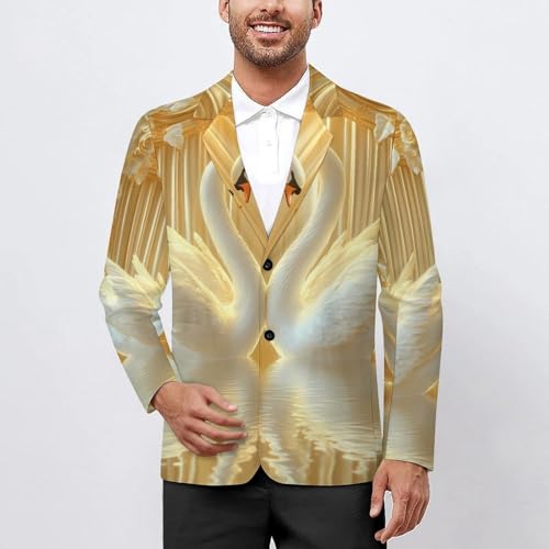 Swans in treasure Mens Suit Jacket Lapel Blazers V Neck Button Business Coat Tuxedo for Wedding Party