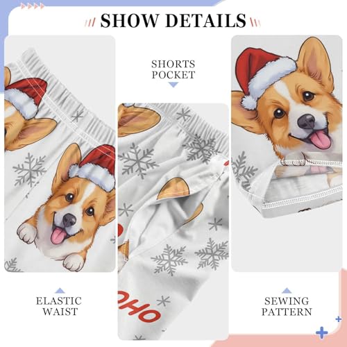 Christmas Pajama Pants Dog Santa Hat Snowflakes Long Sleep Pants Lounge Bottoms 7