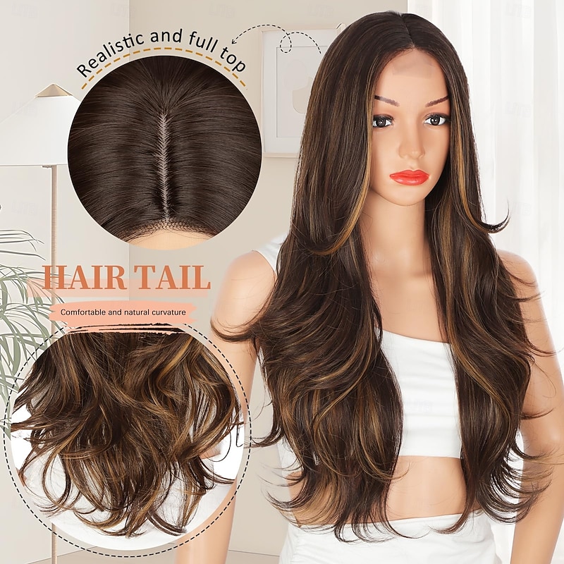Long Layered Wigs for Women Wavy Wigs Middle Part Synthetic Hair Wig for Daily Use Party Cosplay 6