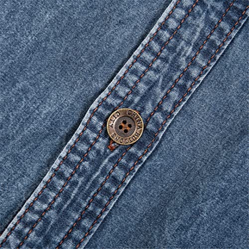 Fabric type: Cotton,PolyesterCare instructions: Machine WashOrigin: ImportedClosure type: Button✔Size: Please Carefully Compare The Size Chart (Especially The Bust) In The Picture On The Left Before Purchasing To Choose The Size That Suits You Best. If You Have Any Questions, Please Feel Free To Email Me For Help.✔Denim Cut: This Denim Shirt Is Designed With Comfort And Fashion In Mind, Comfortable And sophisticated To Wear.✔CLASSIC WESTERN COWDIM SHIRT: This Classic Western Cowboy Shirt Is Made For Those Who Really Love Denim And Is A Tried And True Classic.✔QUALITY MATERIALS: There Is No Question That This Classic Will Stand Up To Wear And Tear. Made From High-Quality Materials, This Denim Shirt Creates A Lively, Active Feel That Will Keep You Comfortable Throughout The Day At Work Or At Home.✔Comfortable To Wear: Whether You Are Going Out Or In Daily Life, You Need A Quality Denim Shirt That Will Keep You Comfortable All Day Long. This Denim Shirt Provides Comfort And Breathability For Your Day. Perfect for everyday use. first-class materials and excellent craftsmanship ensure long-lasting durability.