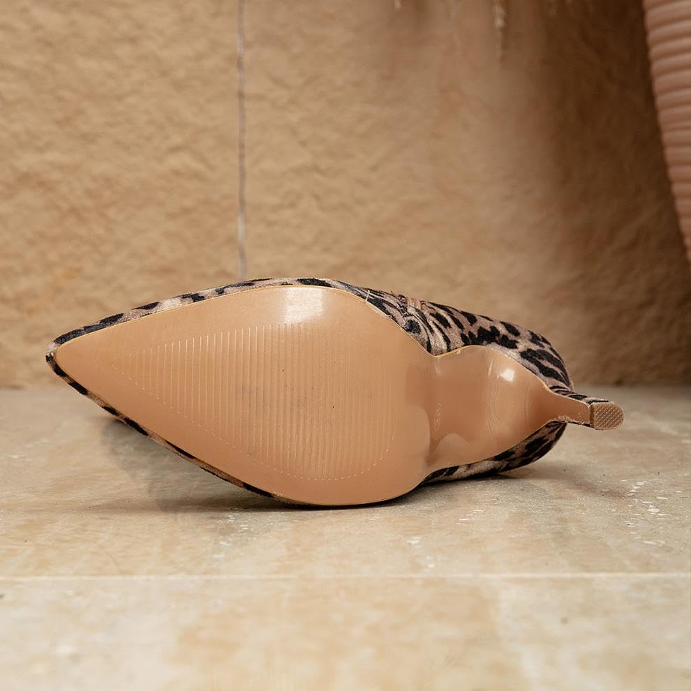 Womens Knee High Boots Slouchy Boots Sexy Tall Long Boots Leopard Pointed Toe Side Zip High Stilettos Heel Boots 4