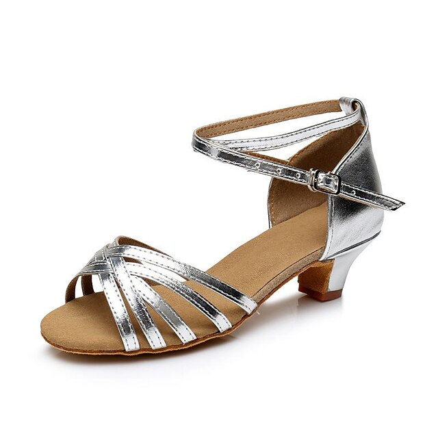 Girls' Silver Strappy Latin Dance Shoes – Low Heel Ballroom Sandals with Suede Sole for Performance & Practice 15