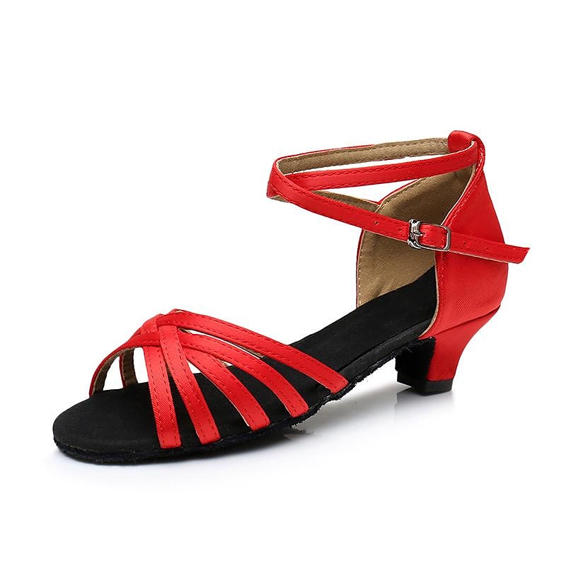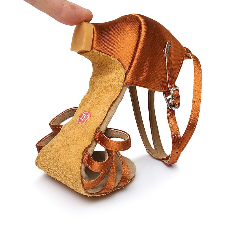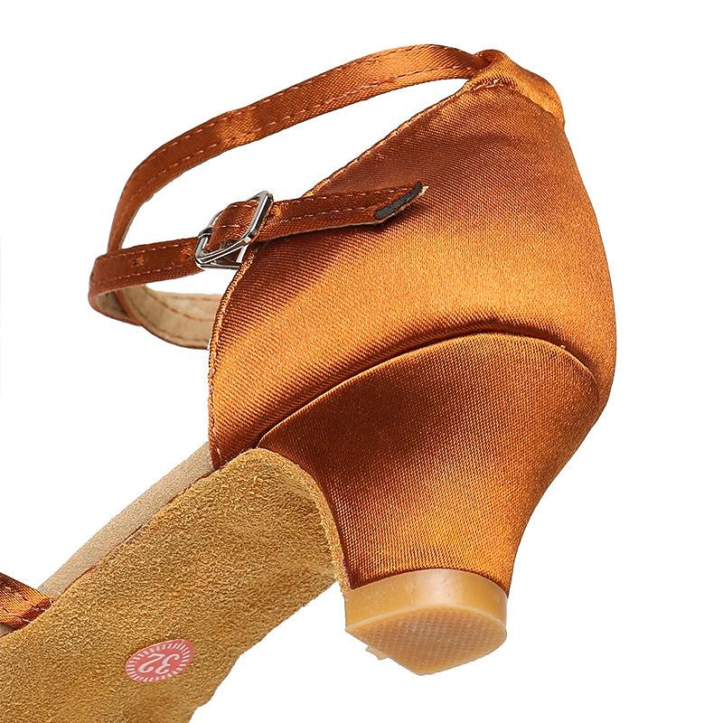 Highlights [Fabric] Crafted from high-quality satin, these women's Latin dance shoes offer a luxurious and smooth texture, ensuring both comfort and elegance during your dance routines. [Style and Fit] These shoes feature a low heel design, perfect for providing stability and comfort, making them ideal for extended dance sessions. The open-toe design with intricately woven front straps adds a sophisticated touch to the shoes. [Design Highlights] The adjustable ankle strap with a buckle ensures a secure and customized fit. The shoes' suede outsole enhances grip, providing better support and flexibility during movement. [Occasions] Perfect for stage performances, indoor practice sessions, and dances like ChaCha and Rumba. Whether attending a dance class or prepping for a performance, these shoes blend functionality with style. [Size Notice] Available in an extensive size range, from EU Size 26 to 40, accommodating various foot sizes. It is recommended to select one size larger than usual for the best fit.