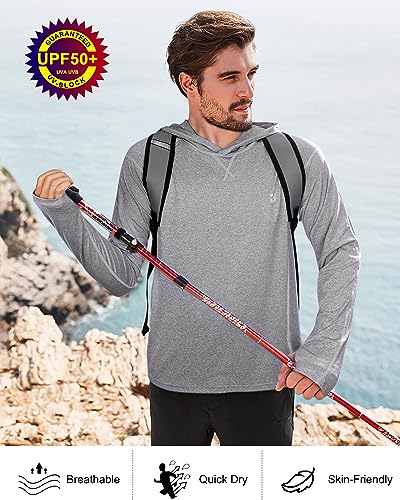 Roadbox Mens Long Sleeve Sun Shirts, 2 Pack UPF 50+ UV Protection Hoodie Shirt for Fishing Hiking Running Workout Swim 5