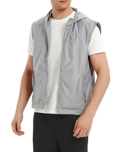 • 【Design】- Full front zip and hooded design keeps you warm and comfortable even on windy days. The sports vest with simple design, loose armholes can let you move freely and can be paired with T-shirts, sweatshirts, jeans, shorts and trousers. The men's utility vest is simple and practical, the best choice for spring, summer and autumn.