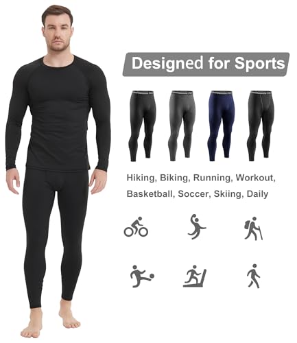 HOT ! 4 Pack Men Thermal Compression Pants,Fleece Lined Heated Leggings for Cold Weather Sports Athletic Winter Baselayer