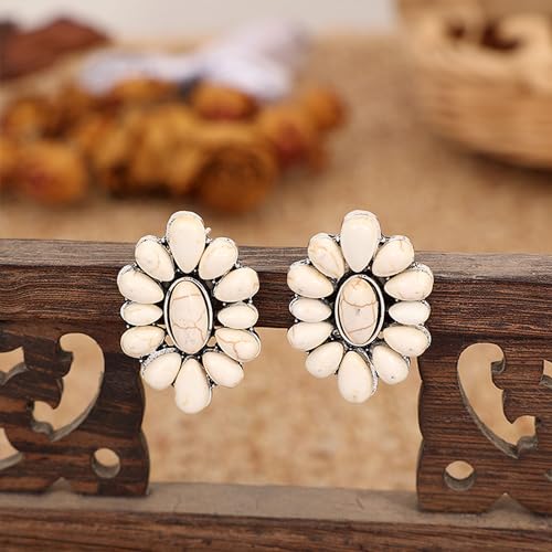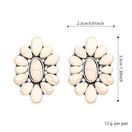 Bohemian Vintage Turquoise Oval Flower Stud Earrings Geometric Ethnic Teardrop Earrings Western Cowgirl Jewelry Gift for Women
