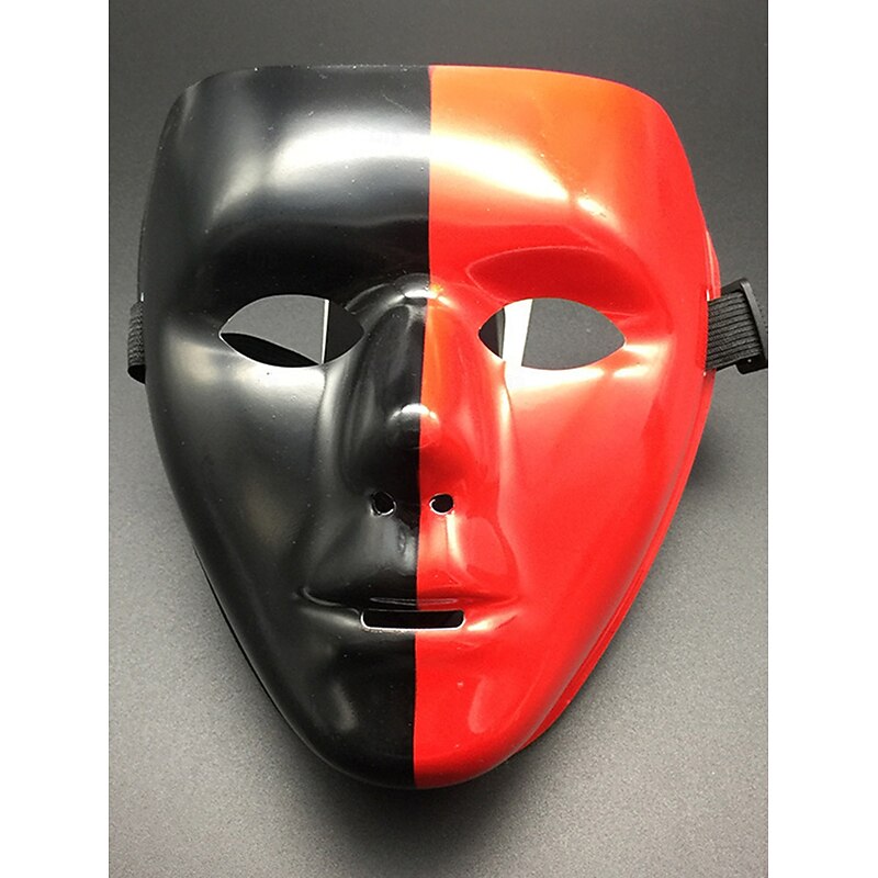 HOT ! Men's Halloween Half Face Mask - Black and White Phantom Costume Accessory with Red Flame Design for Party and Cosplay