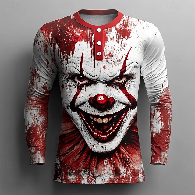 $23.99 - Men's Halloween Graphic Clown Henley Shirt Long Sleeve Fashion Cute Daily Casual Holiday Going out Fall Spring & Fall Dark red Red Red Black Henley Henley T-Shirt 2025. Shop for cheap Halloween T shirts online? Buy at lightinthebox.com on sale today!