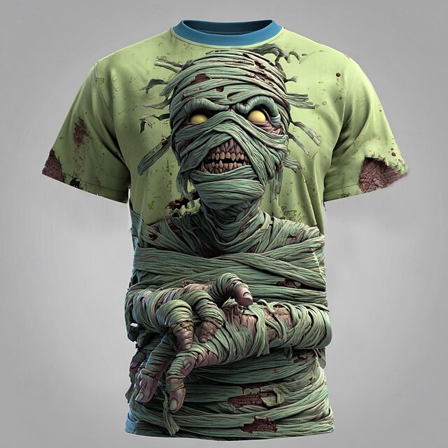 More information about Halloween Men's Optical Illusion 3D Mummy T Shirt Short Sleeve T shirt 3D Print Crew Neck Shirt Exaggerated Designer Horror Party Street Holiday Blue Green Khaki Summer Spring All Seasons Clothing