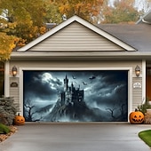 More information about Halloween Tapestry Garage Door Cover Large Hanging Backdrop Pumpkin Castle Dark Punk Gothic Style Party Outdoor Shooting Backgrounds Front Door Home Decor