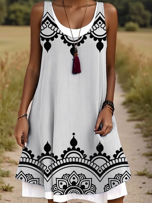 More information about Women's Midi Dress Tank Dress Fashion Classic Outdoor Daily Weekend Regular Fit Graphic Geometric Sleeveless Crew Neck Black And White Summer Spring Fall