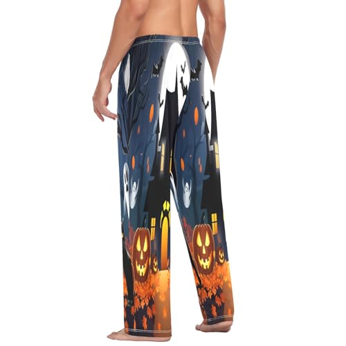 HOT ! Qilmy Castles & Halloween Pumpkins Men's Cotton Pajama Pants, Lightweight Lounge Sleepwear with Drawstring and Pocket