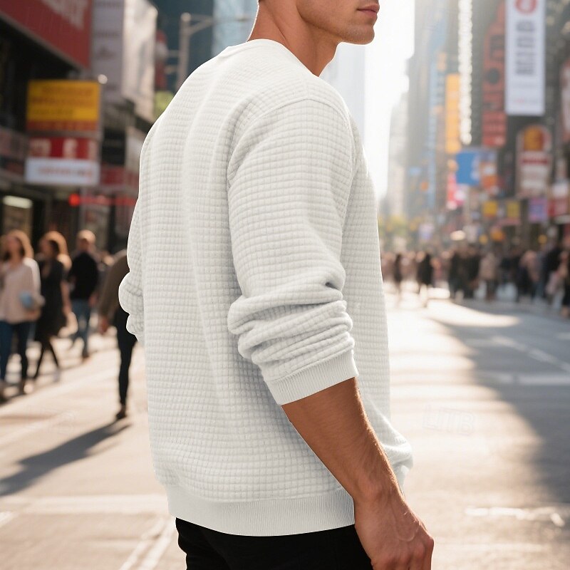 This Men's Sweatshirt Black White Army Green Khaki Dark Gray Crew Neck Plain Jacquard Ribbed Textured Knit-texture Sports & Outdoor Daily Holiday Polyester Streetwear Basic Casual Spring Fall Clothing combines elegant design with practical functionality. Every detail has been carefully considered to ensure you get the best possible experience. The exceptional construction means this product will serve you well for years to come.