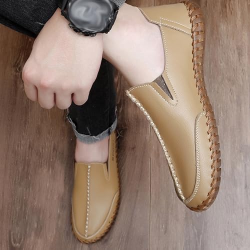 MOYOWEI Men's Slip-on Casual Dress Leather Shoes,Comfort Hand-Stitching Non-Slip Ox Softsole Driving Walking Fashion Sneakers 7