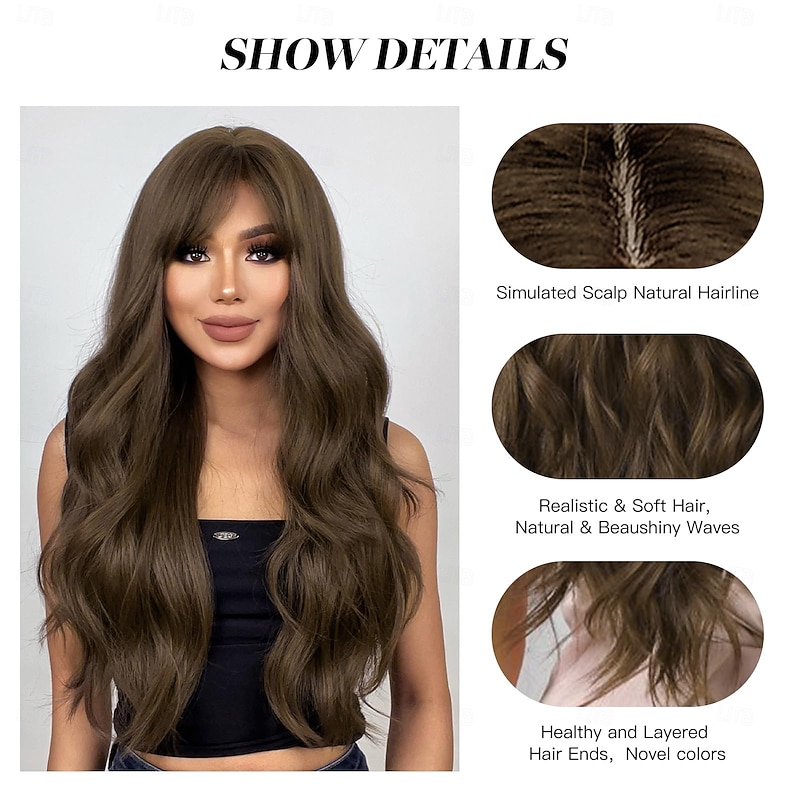 Long Wig with Bangs Wavy Wigs for Women  Synthetic Hair Wig for Daily Party Use 16