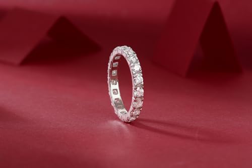 1.9-2.5 CTTW Moissanite Wedding Band Ring, 3mm Width Full Eternity Band Ring for Women, D Color VVS1 Round Moissanite Jewelry 925 Sterling Silver, Anniversary and Birthday Gift, All Size 2