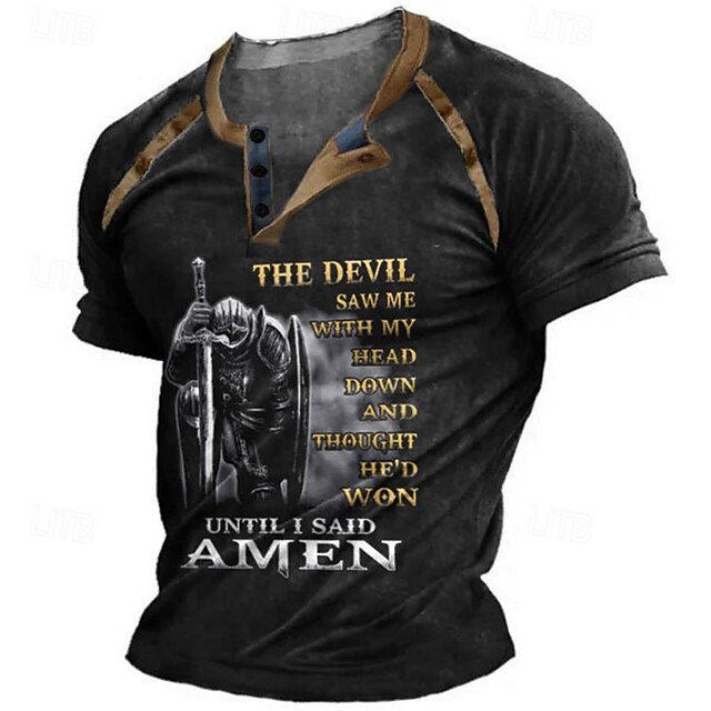 More information about Men's Halloween Graphic Color Block Knights Templar Henley Shirt Tee Short Sleeve 3D Print Vintage Fashion Designer Outdoor Casual Daily Summer Black Brown Green Dark Blue Henley Henley T-Shirt