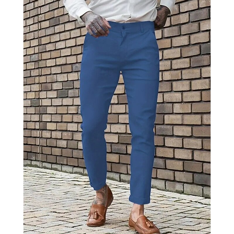 More information about Men's Dress Pants Skinny Trousers Chinos Buttons Pocket Plain Comfort Formal Party Work Fashion Classic Style Blue Khaki Micro-elastic