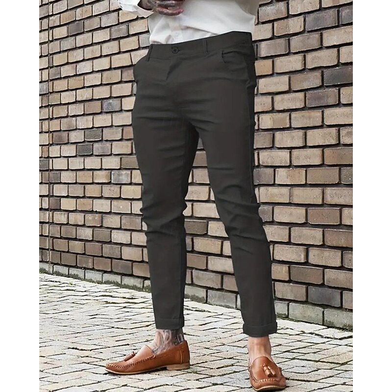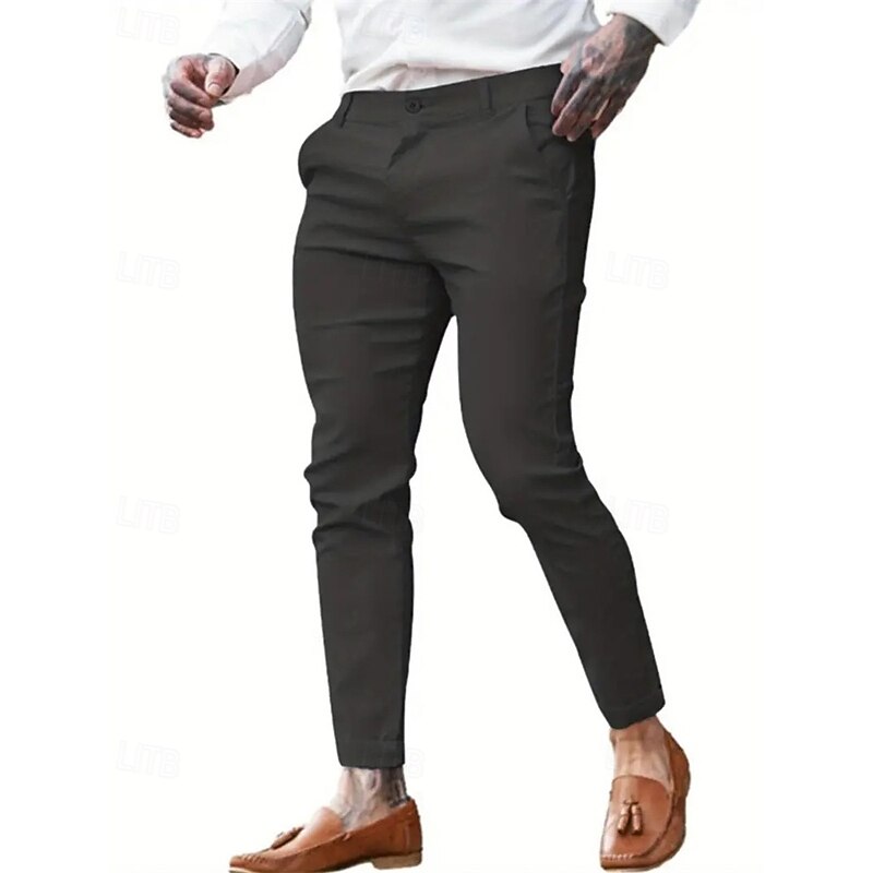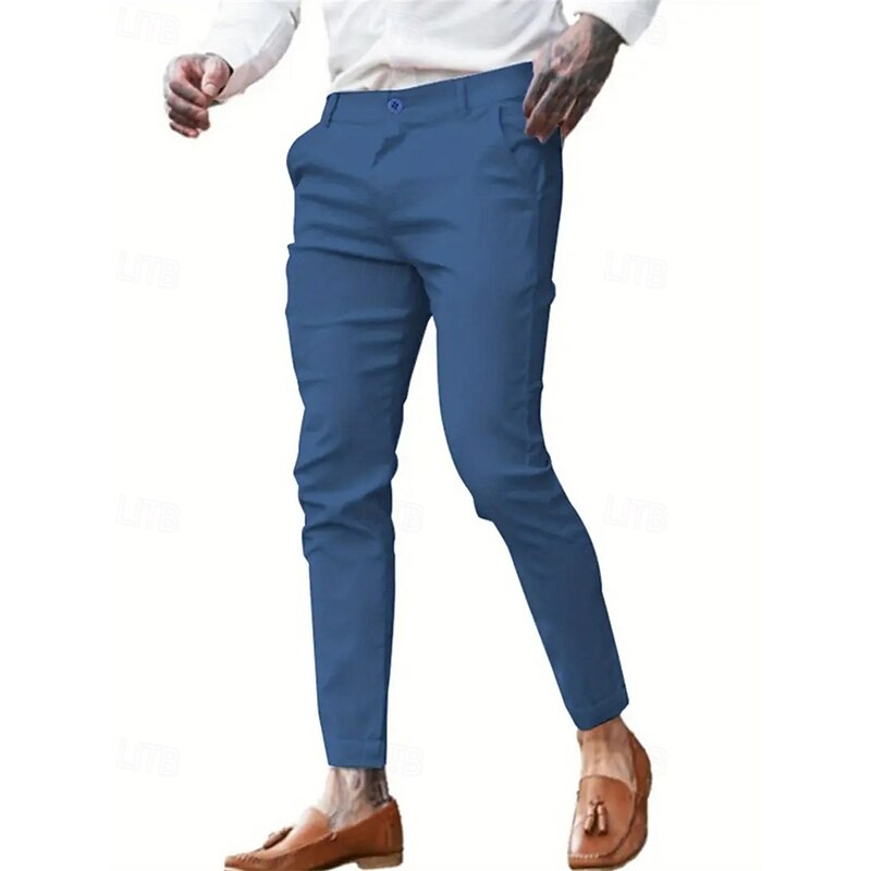 HOT ! Men's Dress Pants Skinny Trousers Chinos Buttons Pocket Plain Comfort Formal Party Work Fashion Classic Style Blue Khaki Micro-elastic