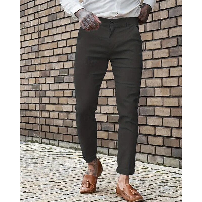 Men's Dress Pants Skinny Trousers Chinos Buttons Pocket Plain Comfort Formal Party Work Fashion Classic Style Blue Khaki Micro-elastic 10