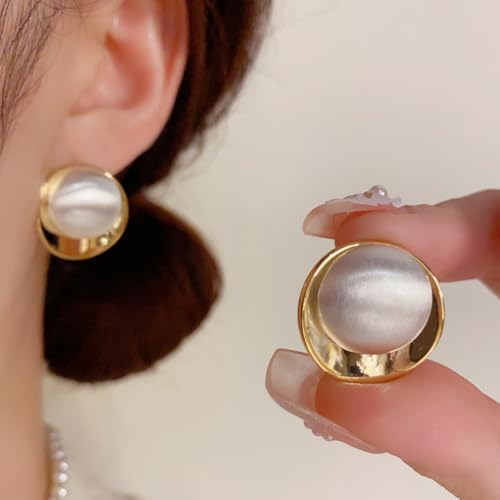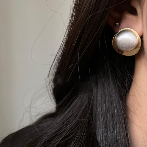 More information about Geometric Chunky Stud Earrings for Women,Thick Brashed Matte Brass Metal Lightweight Dainty Trendy Statement Two-Tone Jewelry Earrings