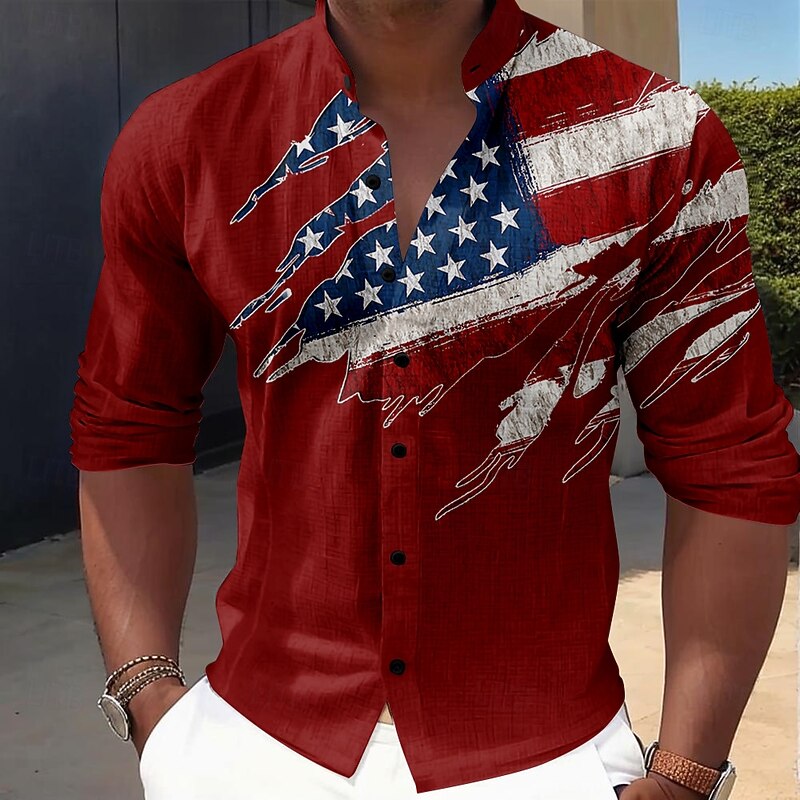 This American Independence Day Men's American Flag Patriotic Button Up Shirt Long Sleeve Casual Vacation Daily Summer Spring & Fall Grandad Collar Band Collar 3D Print Black Red Blue combines elegant design with practical functionality. Every detail has been carefully considered to ensure you get the best possible experience. The exceptional construction means this product will serve you well for years to come.