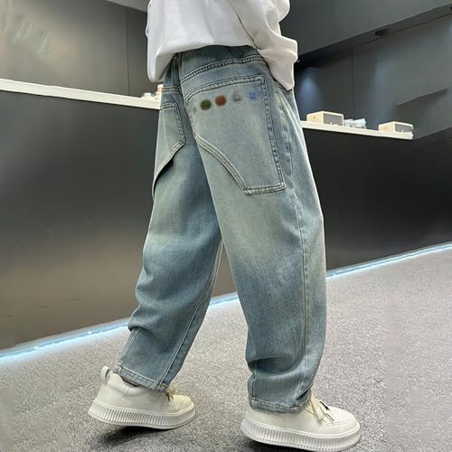 HOT ! Boys Ripped Jeans Distressed Elastic Waist Baggy Denim Pants Wide Leg Straight Trousers Y2k Streetwear Pants 4-14Y